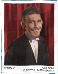 Carlberg är en påhittig man i sina bästa år, med en förkärlek för att uttrycka sig i skrift. Detta expressiva sinnelag ger sig också till känna i en ivran för synthesizersoli, gärna rikt kryddade med pitch bend-effekter, glissandi och överdrivet vibrato. Sin fingerfärdighet vid klaviaturen till trots framstår Carlberg som idel tummar när det handlar om handfast elektronik eller finmekanik; de övriga brukar därför ta hand om sådana spörsmål och låta Carlberg sitta bredvid och komma med orealistiska idéer, läppjande på en Gimlet. Carlbergs officiella post i SHotQ är "rattmaskinist & elevator". |