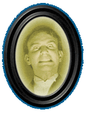 iförd smutsvit skyddsrock över smokingen. Med pannan i djupa veck